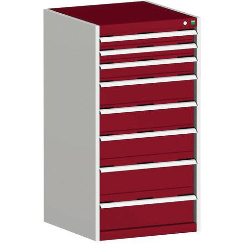 Dílenská zásuvková skříň Bott Cubio, 120 x 65 x 65 cm, 8 zásuvek, šedá-červená