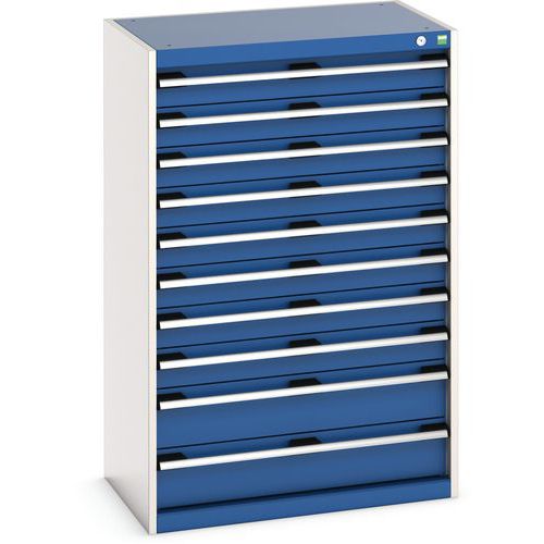 Dílenská zásuvková skříň Bott Cubio, 120 x 80 x 52,5 cm, 10 zásuvek, šedá-modrá