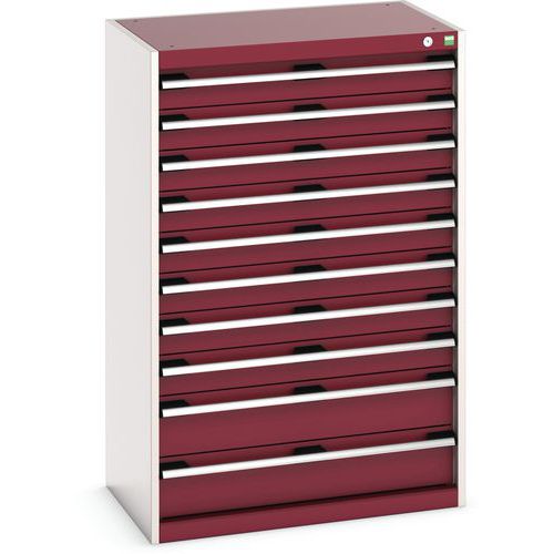 Dílenská zásuvková skříň Bott Cubio, 120 x 80 x 52,5 cm, 10 zásuvek, šedá-červená