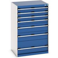 Dílenská zásuvková skříň Bott Cubio, 120 x 80 x 65 cm, 7 zásuvek, šedá-modrá