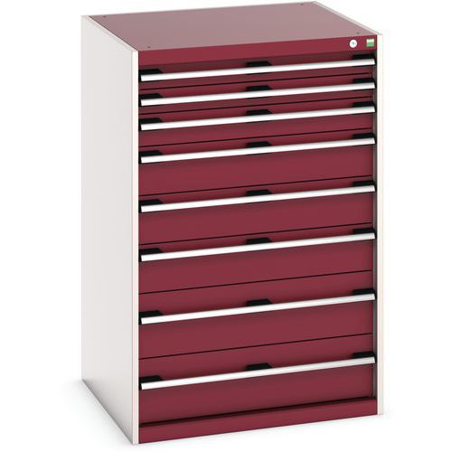 Dílenská zásuvková skříň Bott Cubio, 120 x 80 x 75 cm, 8 zásuvek, šedá-červená