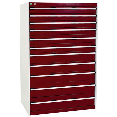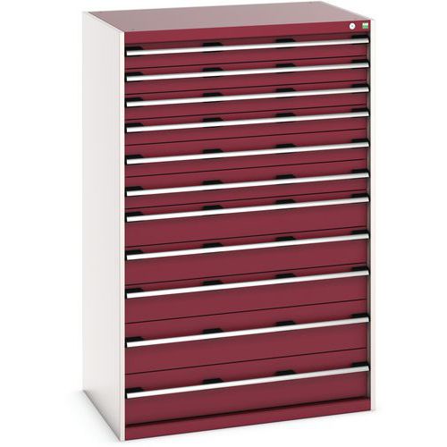Dílenská zásuvková skříň Bott Cubio, 160 x 105 x 75 cm, 11 zásuvek, šedá-červená