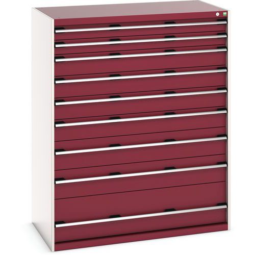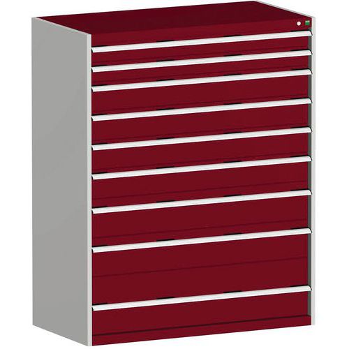 Dílenská zásuvková skříň Bott Cubio, 160 x 130 x 75 cm, 9 zásuvek, šedá-červená