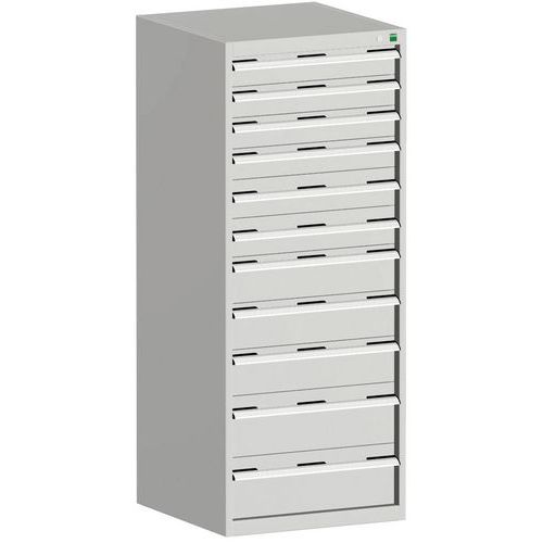 Dílenská zásuvková skříň Bott Cubio, 160 x 65 x 65 cm, 11 zásuvek, šedá-šedá
