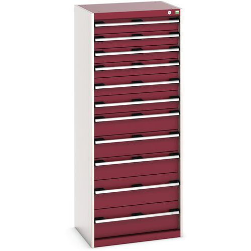 Dílenská zásuvková skříň Bott Cubio, 160 x 65 x 52,5 cm, 11 zásuvek, šedá-červená