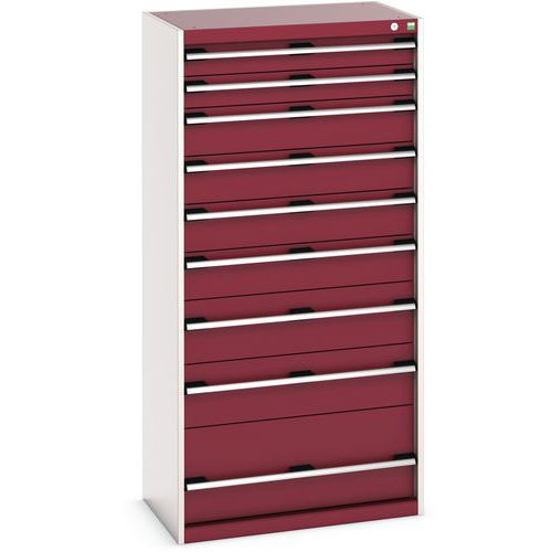 Dílenská zásuvková skříň Bott Cubio, 160 x 80 x 52,5 cm, 9 zásuvek, šedá-červená