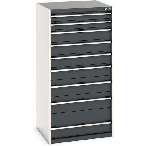 Dílenská zásuvková skříň Bott Cubio, 160 x 80 x 75 cm, 9 zásuvek, šedá-antracit