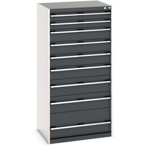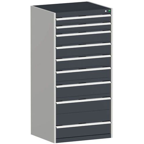 Dílenská zásuvková skříň Bott Cubio, 160 x 80 x 65 cm, 9 zásuvek, šedá-antracit