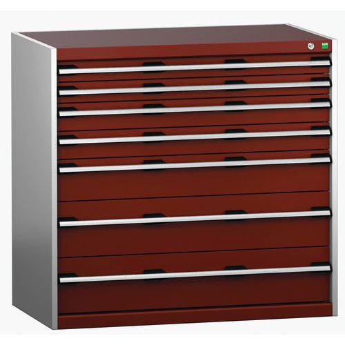 Dílenská zásuvková skříň Bott Cubio 200, 100 x 105 x 65 cm, 7 zásuvek, šedá-červená