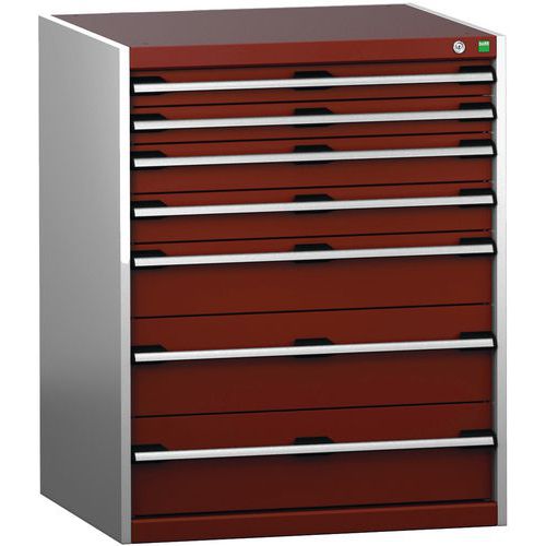 Dílenská zásuvková skříň Bott Cubio 200, 100 x 80 x 75 cm, 7 zásuvek, šedá-červená