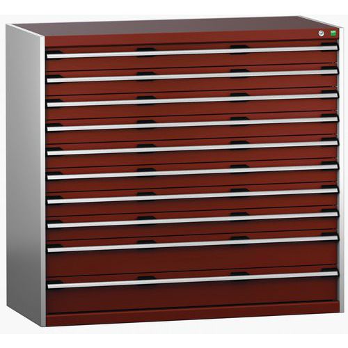 Dílenská zásuvková skříň Bott Cubio 200, 120 x 130 x 65 cm, 10 zásuvek, šedá-červená
