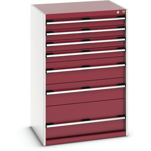 Dílenská zásuvková skříň Bott Cubio 200, 120 x 80 x 65 cm, 7 zásuvek, šedá-červená