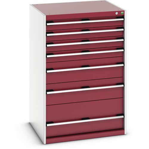 Dílenská zásuvková skříň Bott Cubio 200, 120 x 80 x 75 cm, 7 zásuvek, šedá-červená