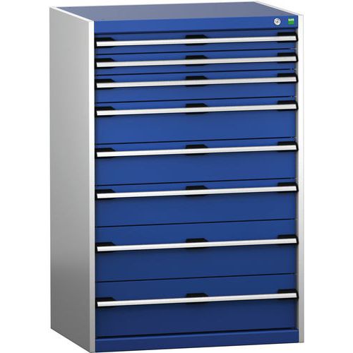 Dílenská zásuvková skříň Bott Cubio 200, 120 x 80 x 65 cm, 8 zásuvek, šedá-modrá