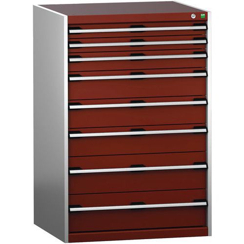 Dílenská zásuvková skříň Bott Cubio 200, 120 x 80 x 75 cm, 8 zásuvek, šedá-červená