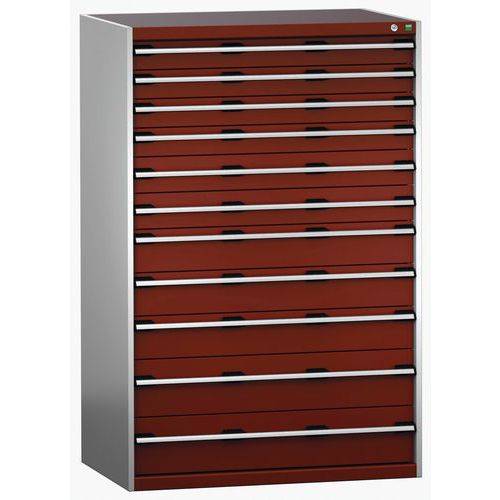 Dílenská zásuvková skříň Bott Cubio 200, 160 x 105 x 75 cm, 11 zásuvek, šedá-červená