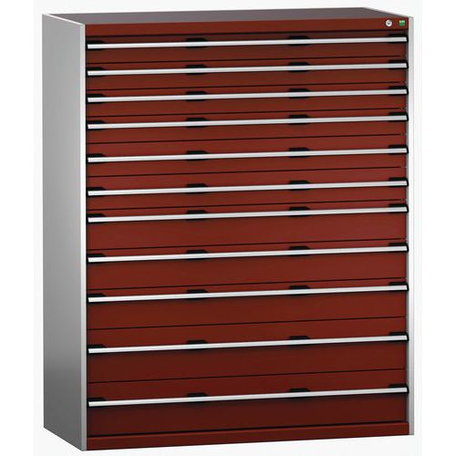 Dílenská zásuvková skříň Bott Cubio 200, 160 x 130 x 65 cm, 11 zásuvek, šedá-červená