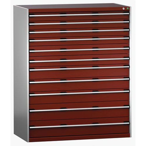 Dílenská zásuvková skříň Bott Cubio 200, 160 x 130 x 75 cm, 11 zásuvek, šedá-červená