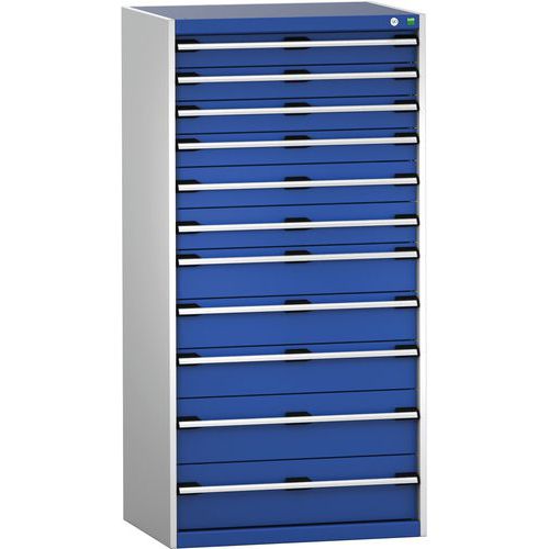 Dílenská zásuvková skříň Bott Cubio 200, 160 x 80 x 65 cm, 11 zásuvek, šedá-modrá