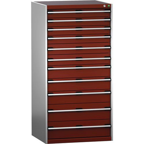 Dílenská zásuvková skříň Bott Cubio 200, 160 x 80 x 75 cm, 11 zásuvek, šedá-červená