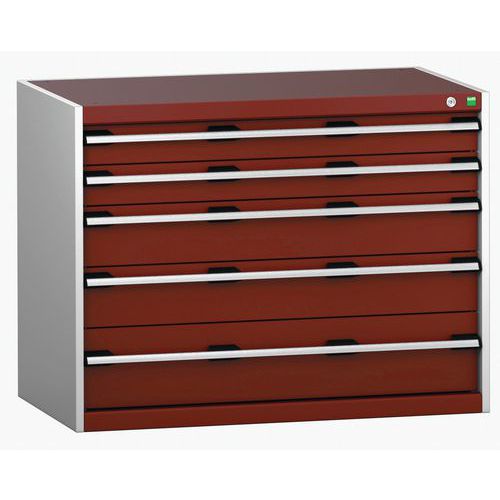 Dílenská zásuvková skříň Bott Cubio 200, 80 x 105 x 65 cm, 5 zásuvek, šedá-červená
