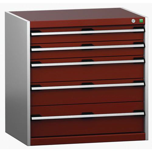 Dílenská zásuvková skříň Bott Cubio 200, 80 x 80 x 65 cm, 5 zásuvek, šedá-červená