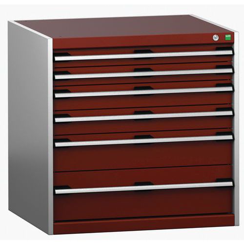 Dílenská zásuvková skříň Bott Cubio 200, 80 x 80 x 75 cm, 6 zásuvek, šedá-červená