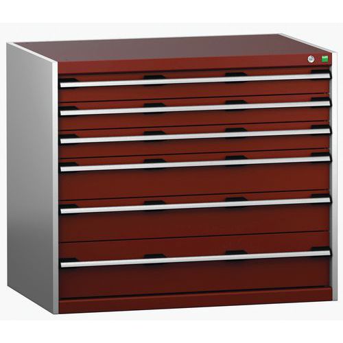 Dílenská zásuvková skříň Bott Cubio 200, 90 x 105 x 75 cm, 6 zásuvek, šedá-červená