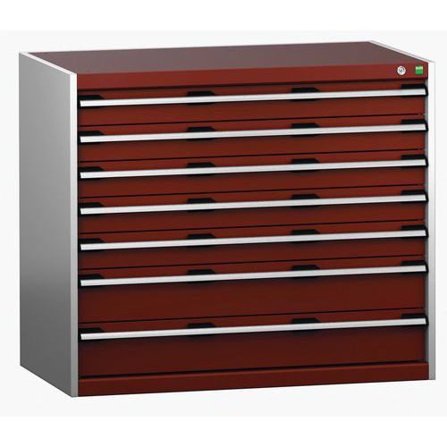 Dílenská zásuvková skříň Bott Cubio 200, 90 x 105 x 65 cm, 7 zásuvek, šedá-červená