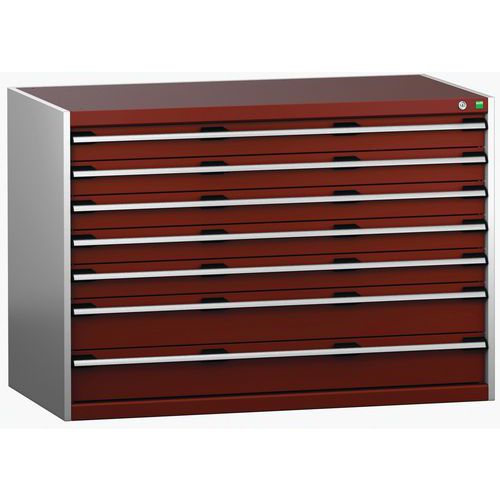 Dílenská zásuvková skříň Bott Cubio 200, 90 x 130 x 75 cm, 7 zásuvek, šedá-červená