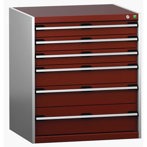 Dílenská zásuvková skříň Bott Cubio 200, 90 x 80 x 75 cm, 6 zásuvek, šedá-červená