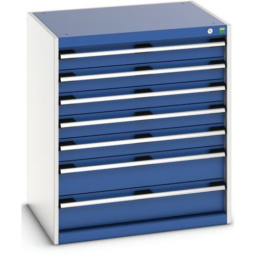 Dílenská zásuvková skříň Bott Cubio 200, 90 x 80 x 65 cm, 7 zásuvek, šedá-modrá