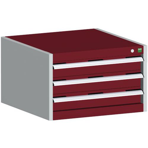 Dílenská zásuvková skříň Bott Cubio, 40 x 65 x 65 cm, 3 zásuvky, šedá-červená