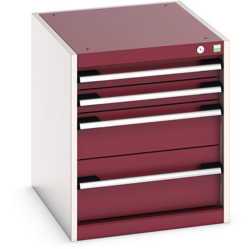 Dílenská zásuvková skříň Bott Cubio, 60 x 52,5 x 65 cm, 4 zásuvky, šedá-červená