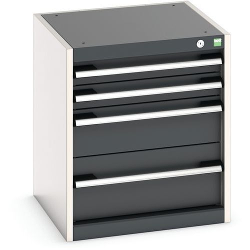 Dílenské zásuvkové skříně Bott Cubio, 60 x 52,5 x 52,5-65 cm, 4 zásuvky