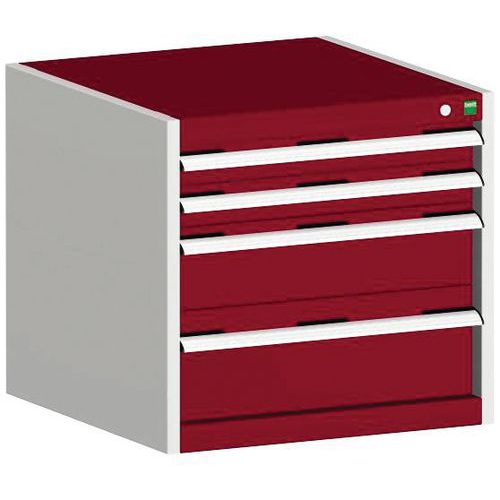 Dílenská zásuvková skříň Bott Cubio, 60 x 65 x 52,5 cm, 4 zásuvky, šedá-červená