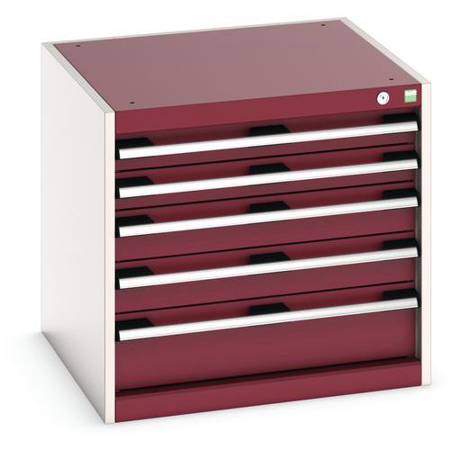 Dílenská zásuvková skříň Bott Cubio, 60 x 65 x 65 cm, 5 zásuvek, šedá-červená