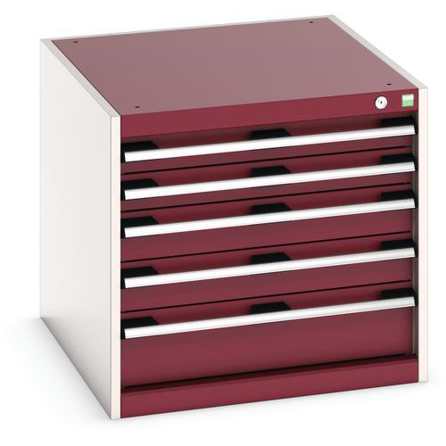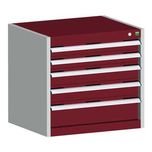 Dílenská zásuvková skříň Bott Cubio, 60 x 65 x 75 cm, 5 zásuvek, šedá-červená