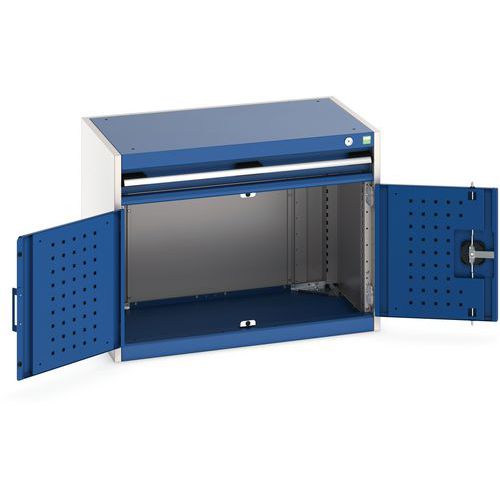 Dílenská zásuvková skříň Bott Cubio, 60 x 80 x 52,5 cm, 1 zásuvka, 1 skříňka, šedá-modrá
