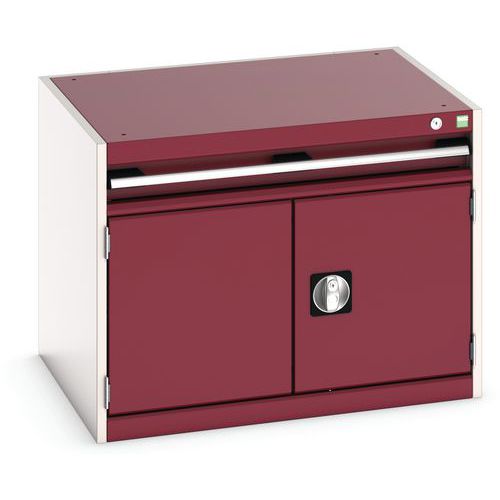 Dílenská zásuvková skříň Bott Cubio, 60 x 80 x 65 cm, 1 zásuvka, 1 skříňka, šedá-červená