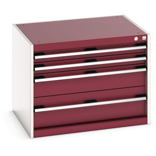 Dílenská zásuvková skříň Bott Cubio, 60 x 80 x 65 cm, 4 zásuvky, šedá-červená