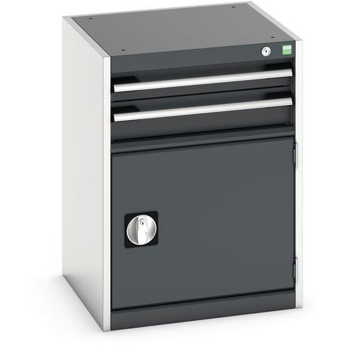 Dílenská zásuvková skříň Bott Cubio, 70 x 52,5 x 52,5 cm, 2 zásuvky, 1 skříňka, šedá-antracit