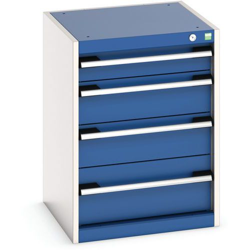 Dílenská zásuvková skříň Bott Cubio, 70 x 52,5 x 52,5 cm, 4 zásuvky, šedá-modrá