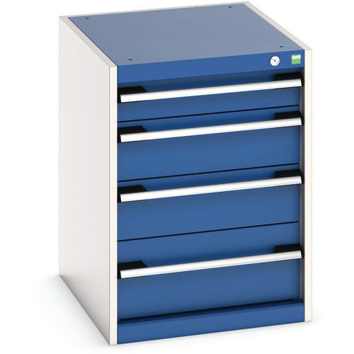 Dílenská zásuvková skříň Bott Cubio, 70 x 52,5 x 65 cm, 4 zásuvky, šedá-modrá