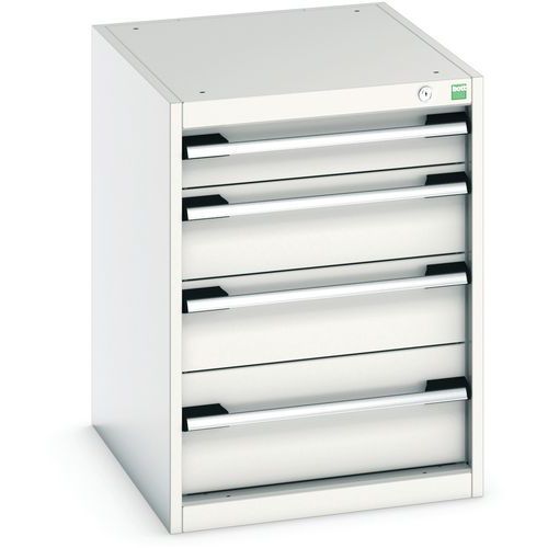 Dílenská zásuvková skříň Bott Cubio, 70 x 52,5 x 65 cm, 4 zásuvky, šedá-šedá