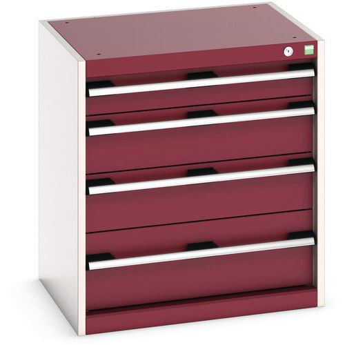 Dílenská zásuvková skříň Bott Cubio, 70 x 65 x 52,5 cm, 4 zásuvky, šedá-červená