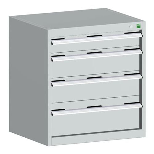 Dílenská zásuvková skříň Bott Cubio, 70 x 65 x 65 cm, 4 zásuvky, šedá-šedá