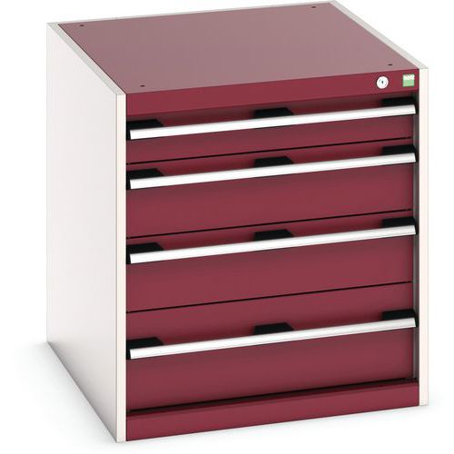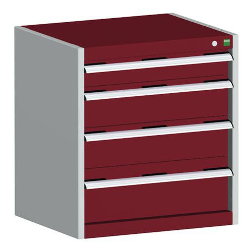 Dílenská zásuvková skříň Bott Cubio, 70 x 65 x 75 cm, 4 zásuvky, šedá-červená