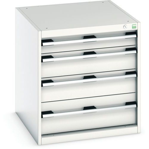 Dílenská zásuvková skříň Bott Cubio, 70 x 65 x 75 cm, 4 zásuvky, šedá-šedá