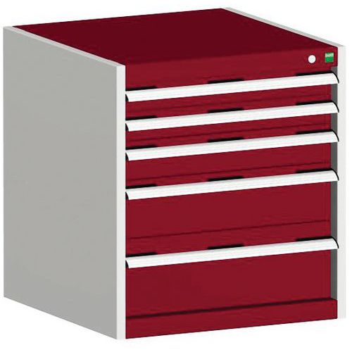 Dílenská zásuvková skříň Bott Cubio, 70 x 65 x 75 cm, 5 zásuvek, šedá-červená